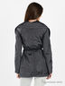 Плащ свободного кроя с резинкой на талии. Длинные цельнокроеные рукава. На поясе и по низу изделия проходит кулиска со шнурком для регулировки натяжения. На рукавах есть кнопки для укорочения рукава. Изделие дополняют накладные объемные карманы на кнопках. Застежка на кнопки в два ряда. Воротник широкий отложной.