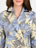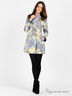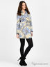 Плащ классического кроя с отрезной талией из ткани с цветочным рисунком. Английский воротник. Застежка двубортная. На рукавах шлевки на пуговицах. Края рукава и воротника обшиты тканью в цвет принта. По бокам изделия втачные карманы на планке.