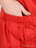 Легкий плащ из тонкого, гладкого дюспо. Ворот-стойка на кулиске. Модель дополнена капюшоном, убирающимся в клапан ворота на молнии. Застежка на молнию и на кнопки. Длинные рукава с манжетами. На полочках два прорезных кармана с застежкой на кнопки и два накладных кармана. Манжеты, пояс и низ изделия дополнены резинкой и лентами на кулисках.
