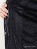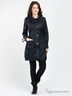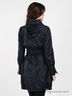 Легкий плащ из тонкого, гладкого дюспо. Ворот-стойка на кулиске. Модель дополнена капюшоном, убирающимся в клапан ворота на молнии. Застежка на молнию и на кнопки. Длинные рукава с манжетами. На полочках два прорезных кармана с застежкой на кнопки и два накладных кармана. Манжеты, пояс и низ изделия дополнены резинкой и лентами на кулисках.