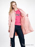 Расклешенная модель с отложным воротом застегивается на кнопки. По боковым швам пришиты петли, в которые вставлен пояс. Рукава посажены на манжеты. Декоративная встречная складка на спинке.
