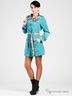 Детали: отложной воротник с лацканами, застегивается на пуговицы, спереди 2 накладных кармана, талия на ремне