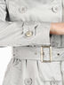 Детали: отложной воротник стойка на крючке, застежка на молнию и пуговицу, спереди четыре прорезных кармана, талия дополнена регулируемым поясом