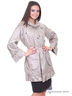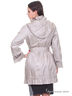 Слегка приталенный плащ из гладкой плащевки. Капюшон, отложной воротник на кулиске, застегивается на молнию, спереди 2 накладных кармана на молнии. Талия на поясе.