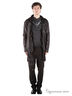 Оригинальный плащ оригинального кроя. Передняя часть выполнена из искусственной кожи. Отложной ворот, пристроченный пояс. Стильный молодежный вариант.