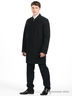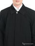 Детали: втачной отложной воротник, застежка на пуговицах, два прорезных кармана с листочком, четыре открытых внутренних кармана, рукав прямой длинный с хлястиком на пуговице в качестве отделки, вшитые подплечики, плащ с одной шлицей.