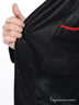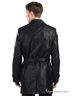Детали: втачной отложной ворот на небольшой стойке, застежка на пуговицах, два прорезных кармана с листочком, рукав длинный прямой с пришитым ремешком позволяющим сжать рукав у запястья, вшитые подплечики, шлевки под пояс, пояс из основной ткани с металлической бляшкой в комплекте, два внутренних открытых кармана, плащ с одной шлицей.