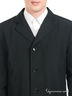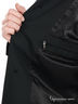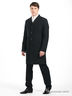 Детали: отложной воротник, застежка на пуговицах, три прорезных кармана, длинный рукав пиджачного типа с пуговицами у запястья, два внутренних прорезных кармана на молнии, плащ с одной шлицей, вшитые подплечики.