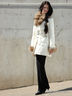 Детали: широкий отложной меховой воротник, застегивается на пуговицы, длинные рукава с меховыми отворотами, спереди 2 прорезных кармана, талия подчеркнута регулируемым ремнем