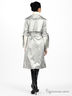 Детали: отложной воротник с лацканами, застегивается на пуговицы, спереди 2 прорезных кармана, талия со шлевками на поясе, короткие рукава с лентами и шлевками