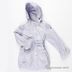 Изящный плащ для девочки из плащевой с ткани, ворот стойка с капюшоном на кулиске, длинные рукава присборенные у плеча с резинкой у запястья. Шлевки для ремня и ремень из основного материала с застежкой на кнопки украшен декоративным цветком с камнем, застежка на молнии с клапаном, подол посажен на резинку.