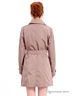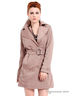 Детали: плащ двубортный, чуть выше колена, застежка выполнена в виде пуговиц спереди по всей длине изделия, талия подчеркнута широким поясом с пряжкой, отложной ворот с лацканами, длинный рукав с хлястиком на пуговице, два прорезных кармана с листочком.