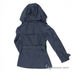 Плащ с отстегивающимся капюшоном, приталенного силуэта. Застежка на пуговицы, длинный прямой рукав с декоративным хлястиком на пряжке, два кармана, пояс продет в шлевки.