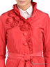 Детали: воротник стойка с рюшами, застегивается на пуговицы, спереди 2 прорезных кармана на кнопке, полочка украшена декоративными розами, талия подчеркнута поясом
