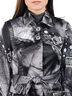 Детали: воротник стойка, застегивается на пуговицы, спереди два накладных кармана, талия со шлевками на поясе, оригинальная кокетка