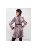 Привлекательный плащ в оригинальной расцветке с застежкой на пуговицы. Воротник стойка, боковые прорезные карманы, ширина рукавов регулируется манжетами. Приталенный силуэт подчеркнут контрастным поясом.