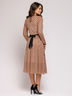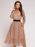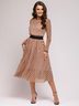Двухслойное платье в бежевом цвете с горошком из бархата в длине миди с контрастной отделкой и поясом. Используя разные сочетания обуви и аксессуаров, платье подойдет как для повседневных, так и нарядных образов.