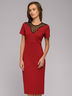 Платье-футляр бордовое с короткими рукавами выигрышно подчеркнет все ваши достоинства. А отделка из фатина в зоне декольте добавит образу загадки.