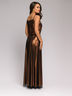 Платье длины макси с бронзовым напылением — все, что нужно для создания по-настоящему роскошного образа. А вставки фатина в зоне декольте только добавят Вам загадки.