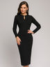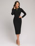 Платье черное с облегающим силуэтом и фантазийным воротом подойдет девушкам, которые хотят подчеркнуть все достоинства фигуры.