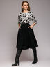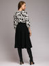 Платье сочетает в себе белый принтованный верх и черную пышную юбку-солнце. Прекрасно подойдет тем, кто хочет разнообразит свой деловой гардероб.
