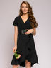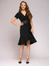Лаконичная модель имеет волан по подолу, короткие рукава и V-образный вырез. Универсальный черный цвет визуально стройнит и дает возможность экспериментировать с аксессуарами.