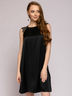 Коктейльное платье из вискозы свободного силуэта, которое подойдет любому типу фигуры. Лаконичное платье выполнено в черном цвете и декорировано кружевными вставками.