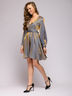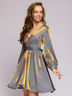 Струящаяся ткань с оригинальным голографическим эффектом сделает ваш образ эффектным и запоминающимся. Объемные рукава с напуском и расклешённая юбка длины мини придает легкости и воздушности.