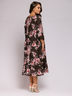Коричневое платье длины миди с анималистичным принтом и рукавами 3/4. За счет свободного кроя модель подходит на размеры с 40 по 46.