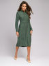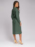 Платье-рубашка модного оливкового цвета отлично подойдет девушкам любого типа фигуры. Все благодаря удачному фасону, свободному крою юбки и правильной длине.