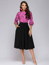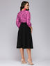 Платье с растительным принтом имитирует комплект, который состоит из яркой блузки цвета фуксии и черной пышной юбкой. Создайте романтичный образ вместе с платьем длины миди и обувью на каблуке.