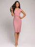 Платье-футляр прилегающего кроя подчеркивает изгибы фигуры.V-образный вырез деликатно акцентирует внимание на зоне декольте и перекликается с разрезом на юбке. Пастельный розовый создает нежный образ.