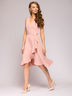 Платье выполнено в длине миди с юбкой асимметричного кроя с воланом по подолу. За счет свободного кроя платье подходит на размеры с 40 по 46, пояс в комплекте поможет отрегулировать необходимую посадку.
