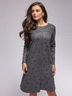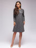 Свободное платье графитового цвета с ярким красным принтом можно носить на каждый день. Оно удачно сочетается как с туфлями, так и с кроссовками.