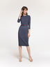 Платье-футляр серое в клетку длины миди должно быть у каждой деловой леди, которая следит за трендами. Советуем сочетать платье с тонким ремешком.
