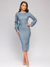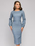 Платье нежного голубого оттенка с пышными рукавами и поясом из основной ткани будет к лицу всем модницам, которые следят за трендами. Модель выполнена из удобного полиэстера.
