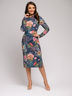 Платье синее длины миди с длинными рукавами и цветочным принтом.