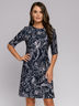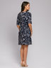 Платье прямого силуэта темно-синего цвета с ярким контрастным цветочным принтом. Элегантное, сдержанное платье подойдет как для вечерней прогулки, так и для похода в театр.