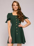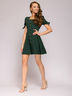 Платье темно-зеленого оттенка с рукавами-фонариками и завязками создает игривое летнее настроение. Расклешенная юбка и вырез интересной формы дополнят приятное впечатление.