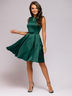 Очаровательная модель длины мини с кокетливым вырезом и бантом на талии. Деликатный блеск ткани подчеркивает глубину благородного изумрудного цвета.