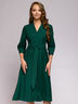 Платье свободного кроя длины миди роскошного изумрудного цвета — идеальный вариант для любого выхода. Обратите внимание на детали: рукава 3/4, струящийся силуэт, V-образное декольте и элегантный пояс создают эффект лёгкости и создают воздушный и нежный образ.