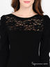 Детали: вырез горловины-лодочка, длинный рукав присборен в складки в проймах, полочка декорирована фактурной кружевной вставкой