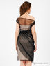 Коктейльное платье приталенного силуэта. Выполнено из гладкого материала с сетчатой вставкой. Отрезной топ. Сбоку застежка на молнию.