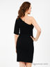 Оригинальное платье приталенного силуэта. Выполнено из гладкого эластичного материала. Рукава разной длины. Модель украшена бисером, стеклярусом и камнями.