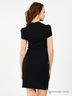 Повседневное платье приталенного силуэта. Выполнено из приятного на ощупь материала. Округлый вырез горловины. Короткие рукава. Спереди застежка на пуговицы и шнурок.