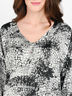 Детали: v-образный вырез горловины, укороченный рукав и низ изделия дополнены манжетами из рибаны