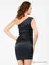 Элегантное платье приталенного силуэта. Выполнено из гладкого атласного материала. Бретель через плечо. Сбоку застежка на молнию. Модель украшена бисером.