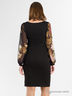 Классическое платье с воздушным шифоновым рукавом. Модель приталенного покроя с округлым вырезом горловины. Декорирована вставкой из кружева и контрастным принтом на рукавах. Пояс в комплекте.