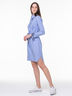 Платье полуприлегающего силуэта из натуральной ткани цвета лаванды. Контрастный отворот рукавов, застежка на кнопки и молнию.