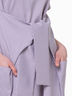 Платье необычного кроя. Детали переходят в фантазийную завязку. Два кармана. Без застежки.